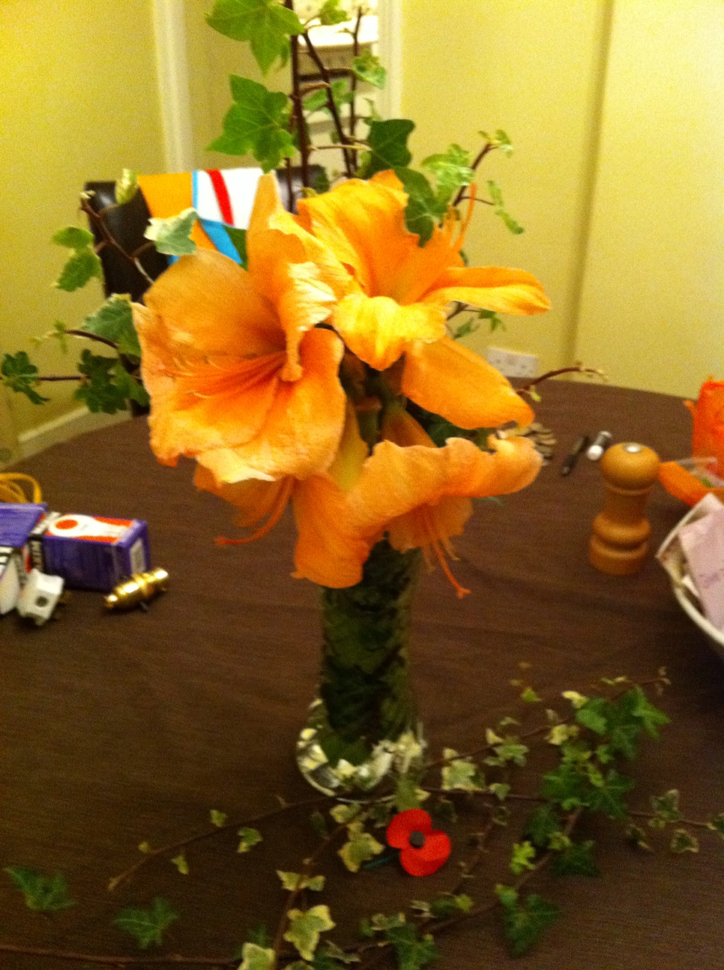 I agreed to take some, and upon doing so, she handed me these tremendous blooms – just one stalk of pale, paper-thin petals.
